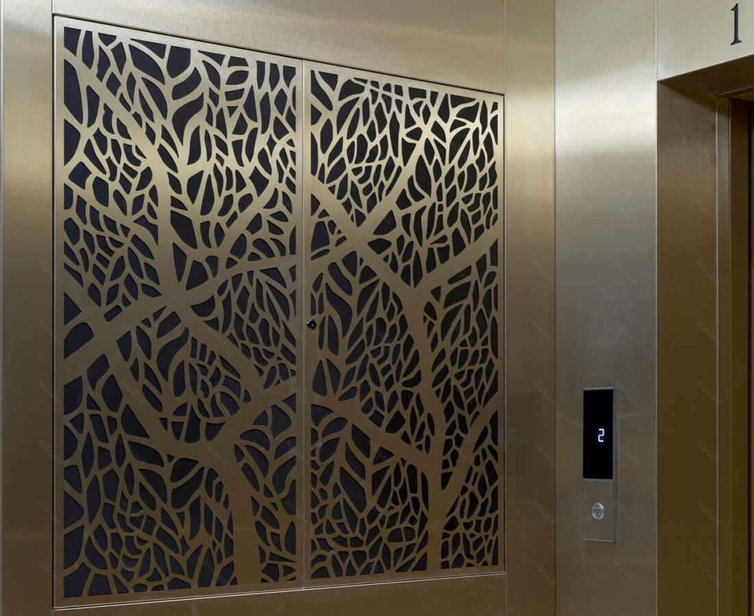 Мы можем использовать различные материалы: нержавеющая сталь (основной), латунь, медь, алюминий, керлит, МДФ, а также шпонированные панели, стекло, мрамор, керамогранит, зеркала, кожу и так далее.